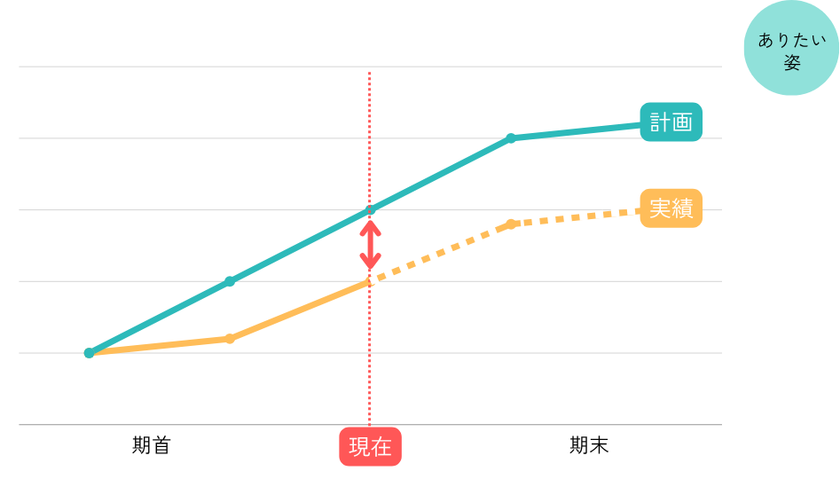 計画と実績のズレをタイムリーに把握し、そこから目標達成に向けた行動計画を考えます。