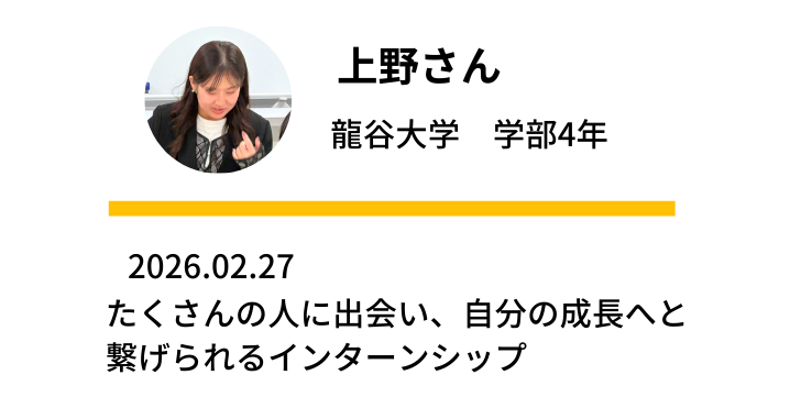 残り数か月になりますが、精一杯学びきりたいと思います!インターン生上野でした。