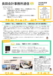 長田会計事務所通信2月号(No.235)を発行いたしました。